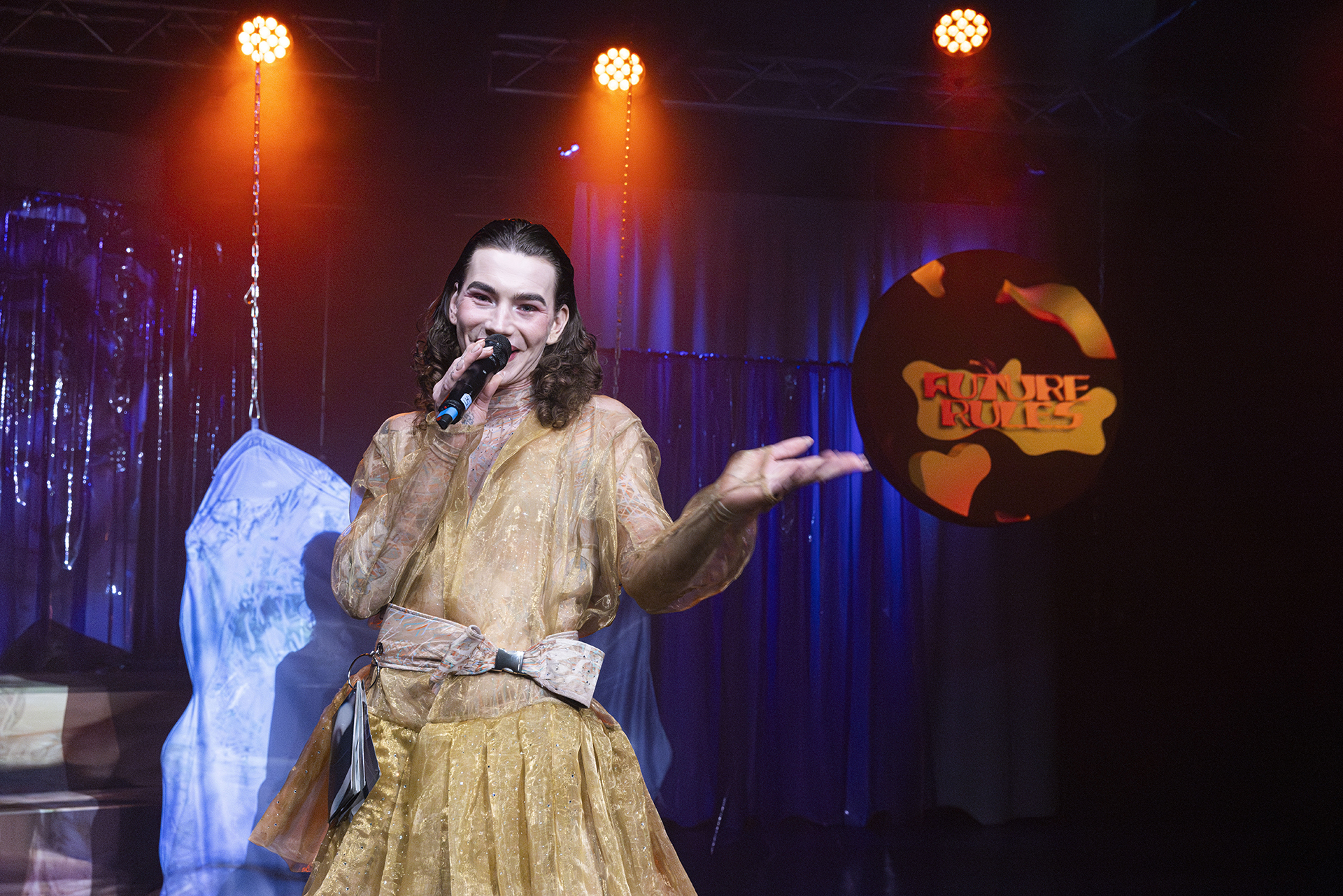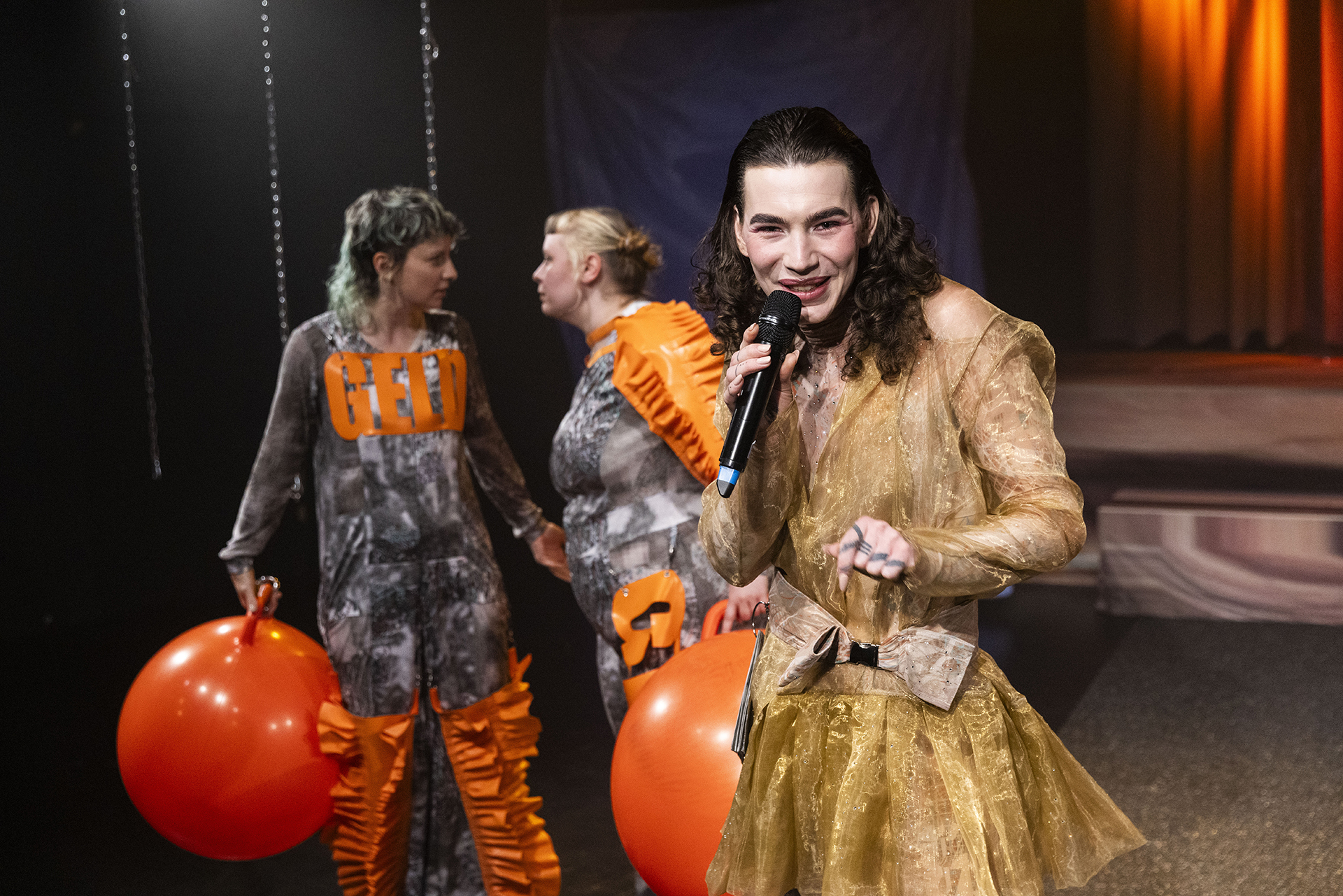 Frauen und Fiktion lassen die Future (of Economy) leibhaftig auf der Bühne erscheinen. Sie moderiert die Reunion ihrer Exes und Lovers und stellt alte und neue emotionale Verstrickungen auf den Prüfstand. Denn sie muss sich entscheiden, mit welchen Liebhaber* innen, in welchen Beziehungskonstellationen und mit welchen Überzeugungen sie sich weiter verwirklichen will. Das Publikum fiebert mit, denn wofür sich Future entscheidet, betrifft uns alle.